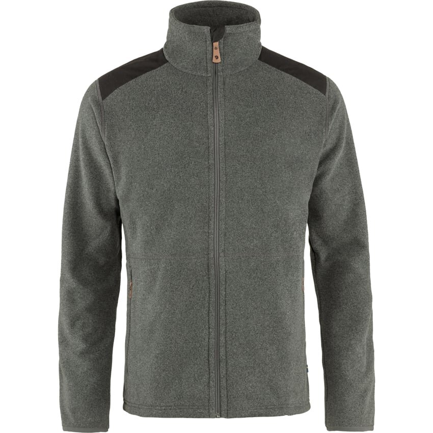 Lightweight and Soft Fleece Sweater Made from Recycled Polyester with a Slightly Marbled Look. Just as Comfortable Under a Shell Jacket When Gazing out from the Skierfe Cliff on a Crisp Day as It is Attractive on Its Own as Dusk Falls over Your Summer Cabin.The Fleece is Manufactured in an Environmentally Friendly Process That Both Spins and Dyes the Thread in the Same Step. For This Model, That Means About 50 Percent Less Water and 31 Percent Less Energy Consumption Compared to a Traditionally Produced Fleece Sweater. Reinforcement in Durable G-1000 over the Shoulders Results in Less Friction Under Your Backpack’s Shoulder Straps. High Collar Protects You from Biting Winds, and There is a Protective Flap of Fleece Between the Zipper and Chin. Two Spacious Zippered Side Pockets. All of the Zipper Flaps Are Made from Natural Tone Leather.