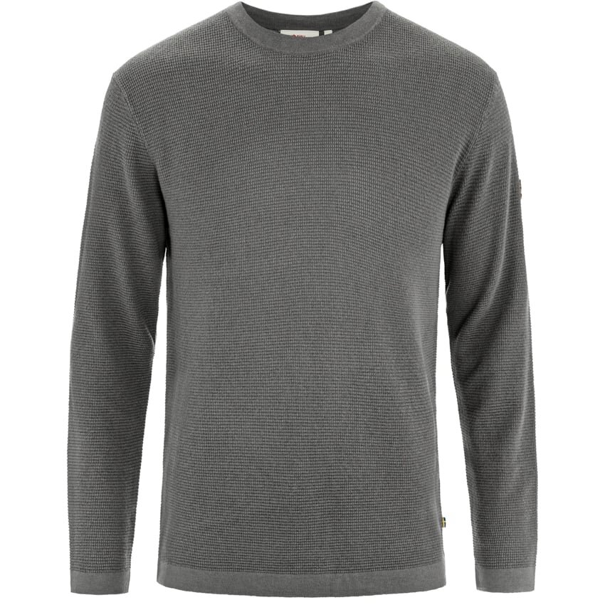 Timeless and Versatile Knitted Sweater in a Traceable Merino Wool and Organic Cotton Blend, Suitable for Both Outdoor and Urban Life. Made with a Lightweight Waffle Knit with Flat-Knitted Tubular Neckline, Cuffs and Hem, the Shoulder Seams Have Been Moved Back to Prevent the Risk of Chaffing When Wearing a Backpack. Ovik Lite Knit Sweater for Men is the Perfect All-Round Sweater That Can Be Worn Every Day Either Layered Under a Jacket or by Itself. Its Classic Design Has a Round Neckline, Regular Fit and a Small Leather Logo on the Sleeve.